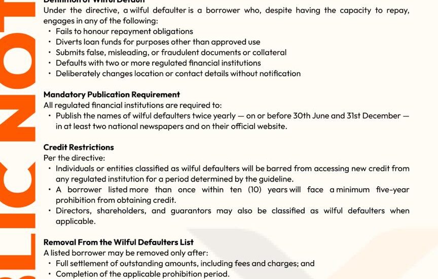 BANK OF GHANA DIRECTIVE ON WILFUL DEFAULT